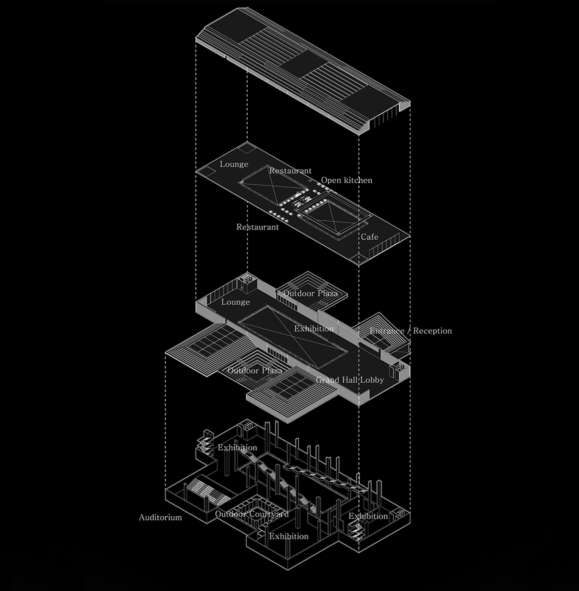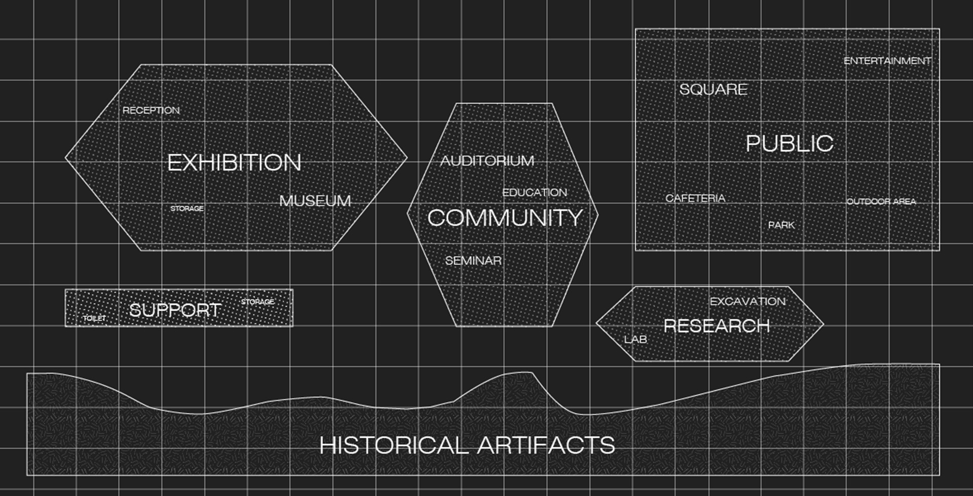 발굴지를 중심으로 한 거대한 보이드 공간을 설정한 후, 메인 동선을 그 보이드를 끼고 돌게 하고, 어느 층수에서든 문화재를 관람할 수 있게 하는 보이드 중심 대공간을 설정하여 이용자들이 문화재를 보다 더 드라마틱하게 관람할 수 있게 하였다.