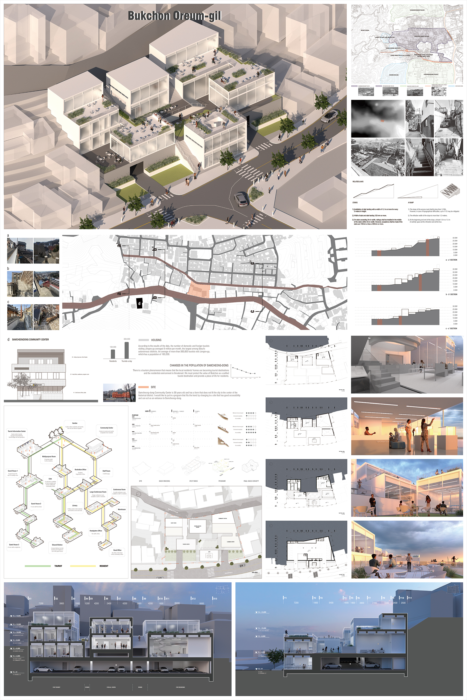 북촌 한옥마을에서, 앉아 쉴 수 있는 곳이 존재하는 삼청동 카페거리까지 이동할 수 있는 길은 크게 3군데가 존재한다. 3군데의 단면을 보면 단차가 많게는 20m, 적게는 5m가 존재하고, 유니버설 디자인에 맞지 않게 설계되어 있다. 이 통로들은 많은 관광객들 뿐만 아니라, 정주형 관광지인 북촌한옥마을 주민들에게도 불편함을 겪게 한다. 그래서 주민과 관광객 모두가 이용할 수 있는 시설을 디자인 함과 동시에 북촌-삼청동카페거리를 연결하는 길의 가파른 경사를 건축적으로 해결하고자 한다.