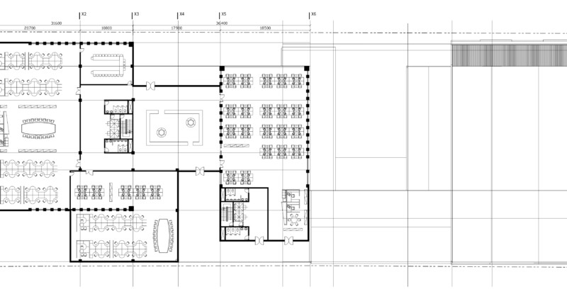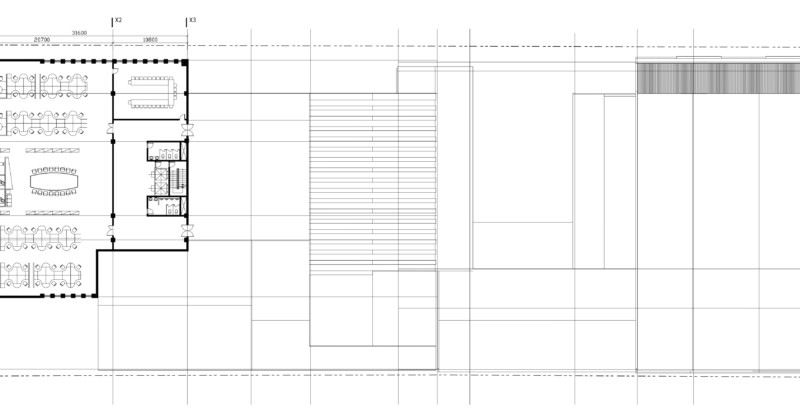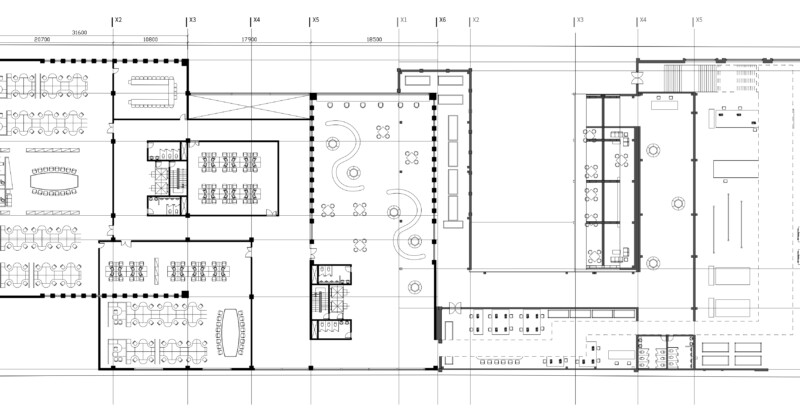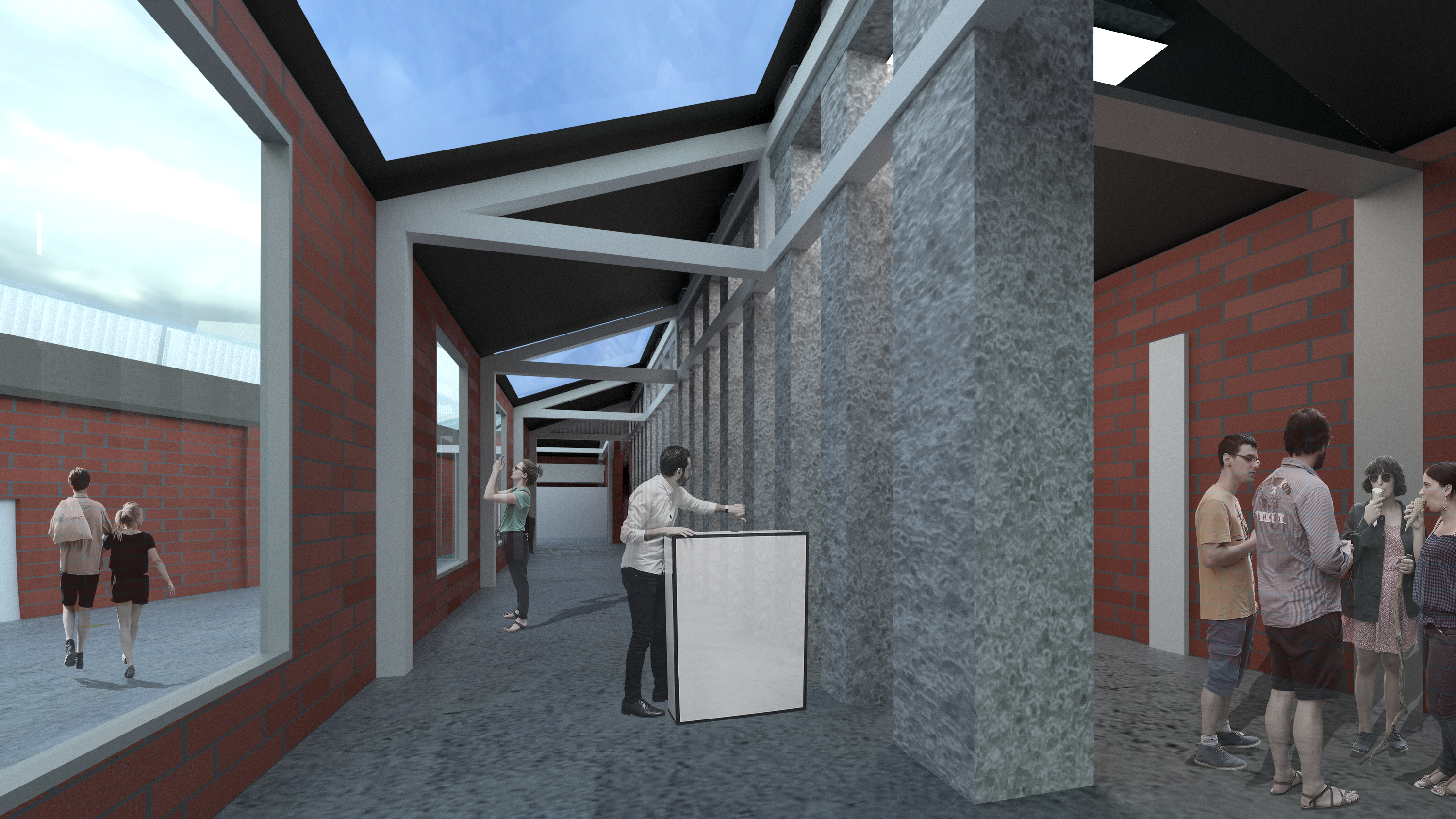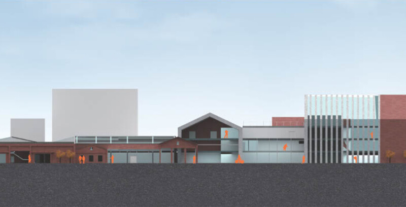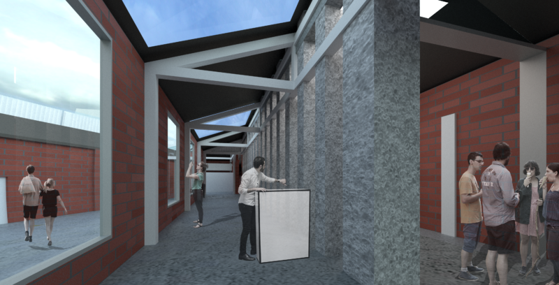 오른쪽에는 기존 공장 사이에 오픈 스페이스를 둬 주로 사람들이 사용할 수 있게 하고 왼쪽에는 실내에 오픈스페이스를 두어 오피스 사람들이 이용할 수 있도록 하였다.