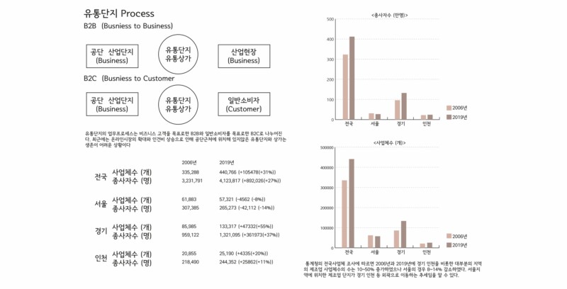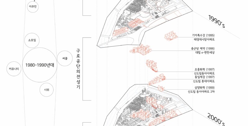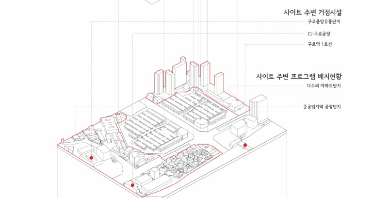 이 프로젝트는 변화하는 도심지의 공단지역 중 하나인 구로공단 속에 위치한 구로기계공구상가의 변화방향을 탐구하며 이는 도심지 유통상가가 하나의 역할이 아닌 지역의 여러 이용객드르을 서포트할 수 있는 다양한 역할을 수행하는 식으로 생존방향을 잡아야한다는 것에 초점을 맞추고 있다.